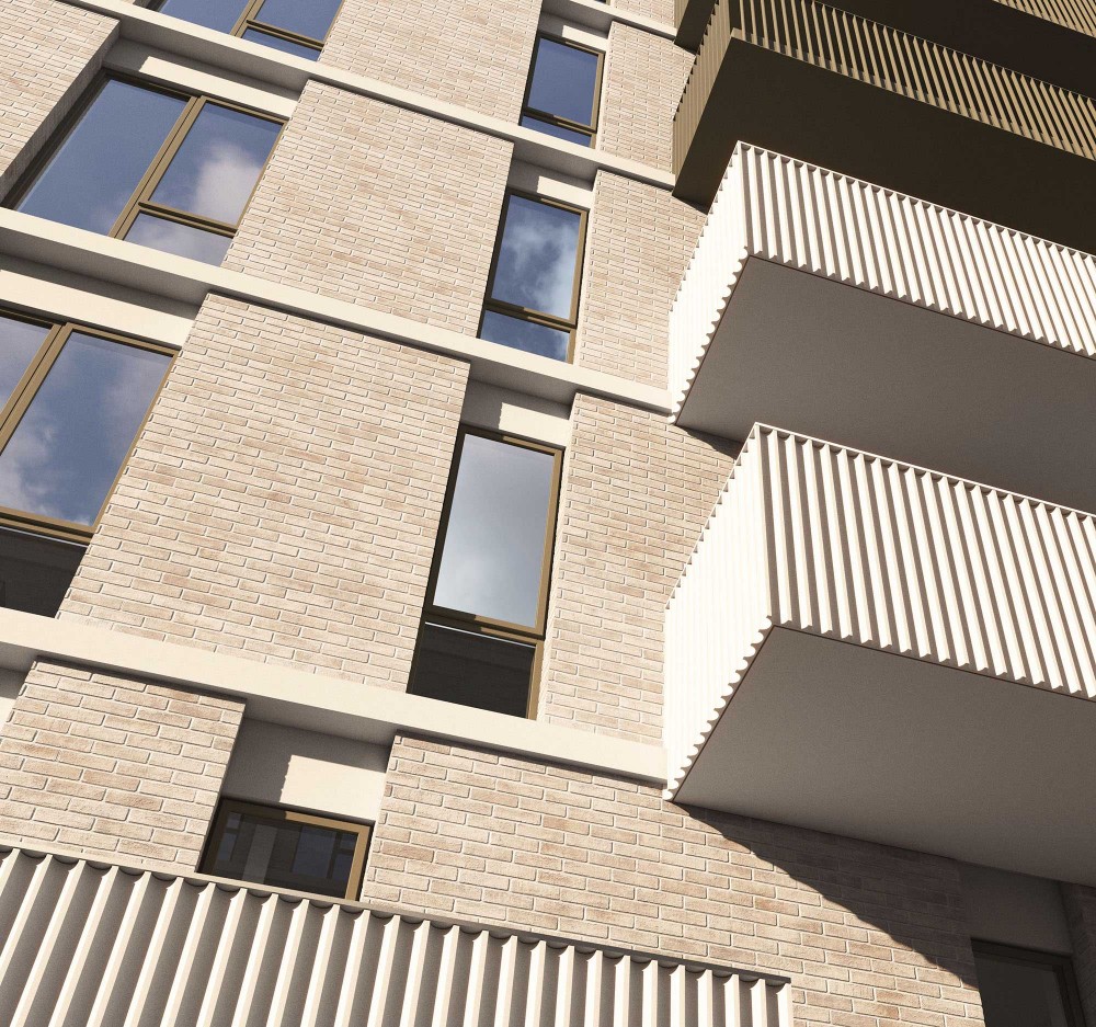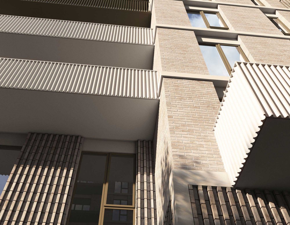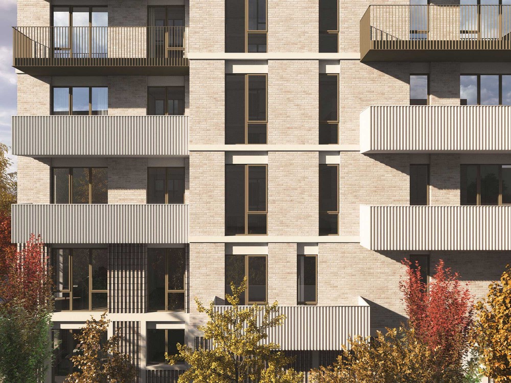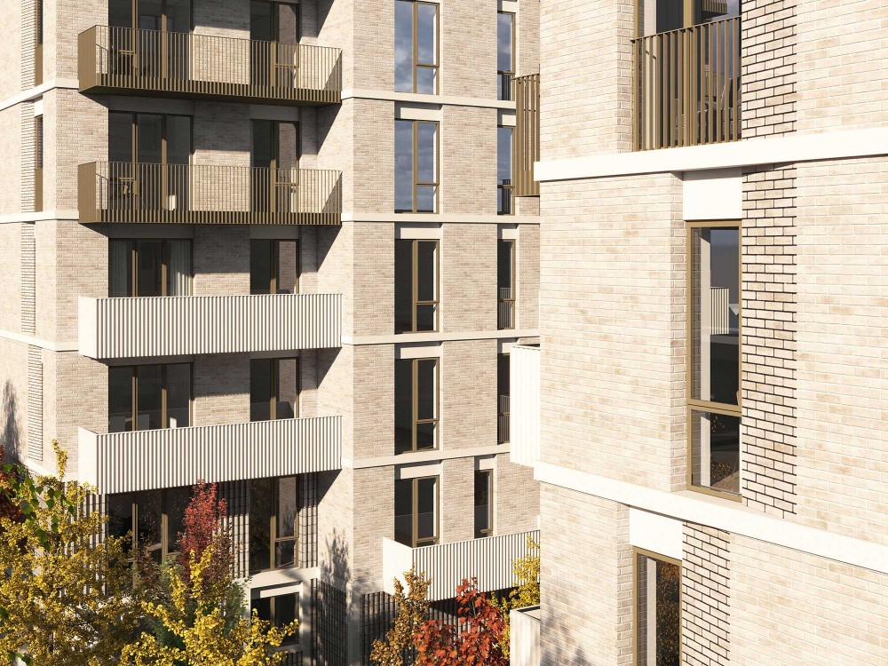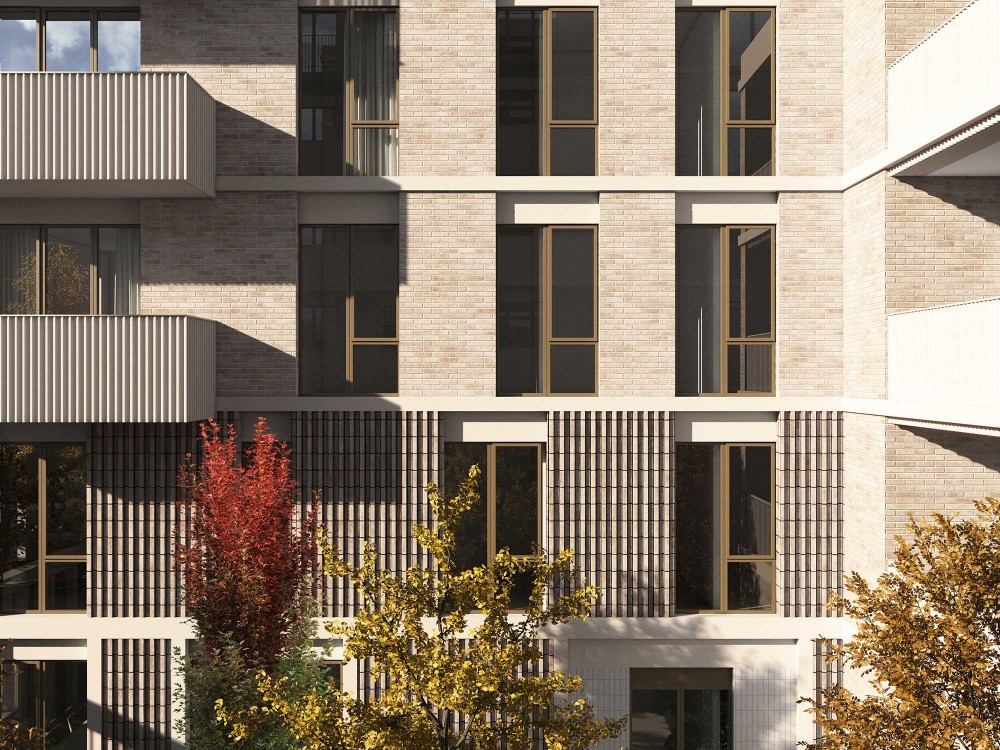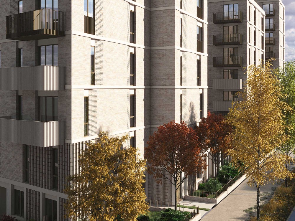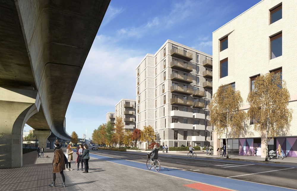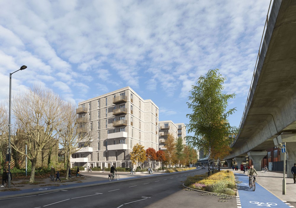 The residential-led development of the site will provide three blocks ranging from 2 to 9 storeys with two private communal courtyards, which will improve the public realm of North Woolwich Road while increasing its biodiversity and urban greenery.