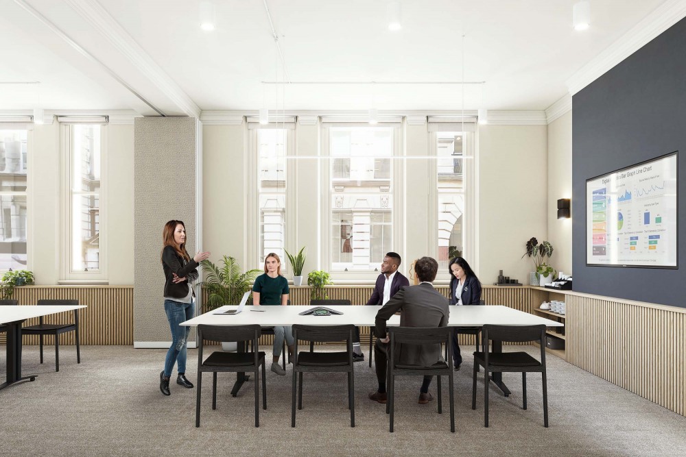Temple Chambers is a representation of modern aesthetics merged with functionality, providing an ideal environment for burgeoning businesses. Dorrington's acquisition of the building from the City of London in December 2021 reflects a strategic move towards fostering a hub for small businesses. The availability of 50 offices, ranging in capacity from 1 to 50 desks, ensures businesses of varying sizes find their perfect fit. The intent is clear: to provide a flexible workspace equipped with state-of-the-art amenities, ensuring that professionals enjoy a seamless work experience.