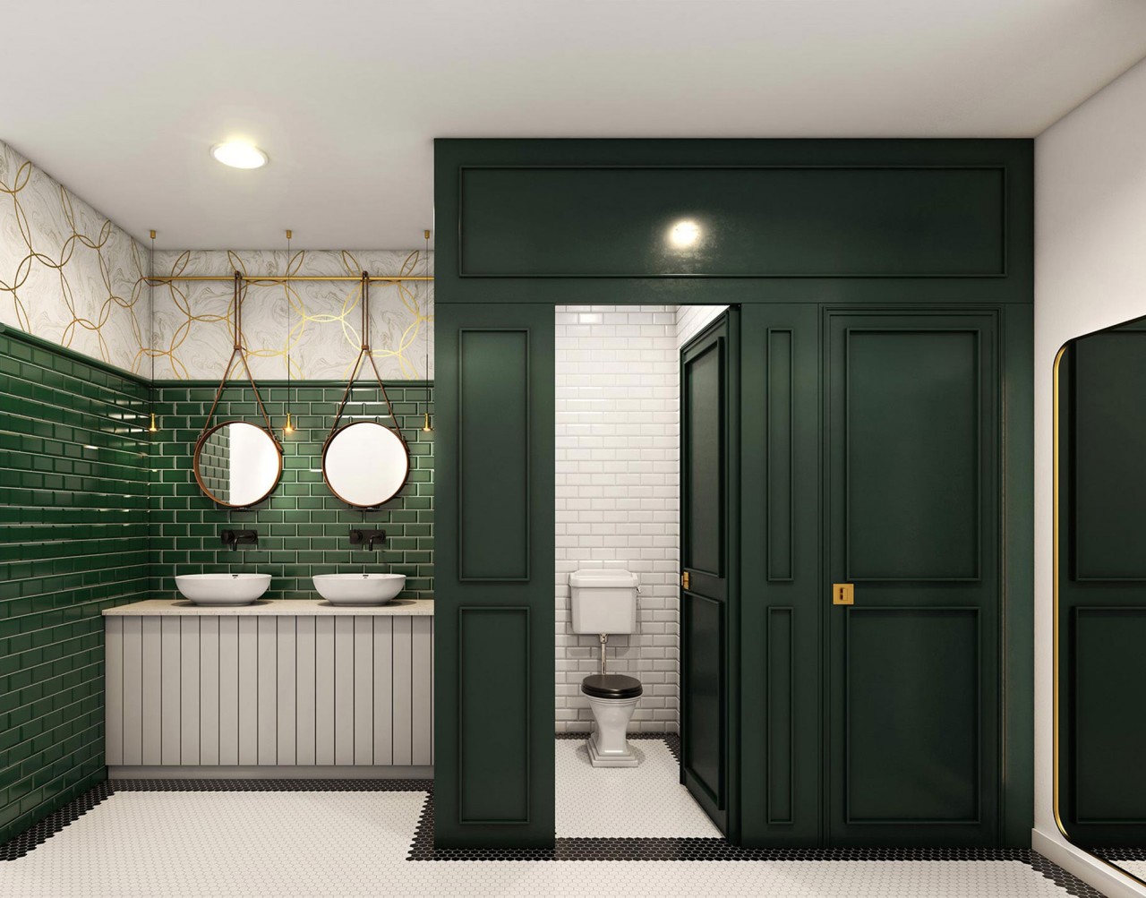 The reception CGI conveys the contemporary and design-led interiors, which feature a bespoke copper reception desk, feature lighting and multi-function spaces.