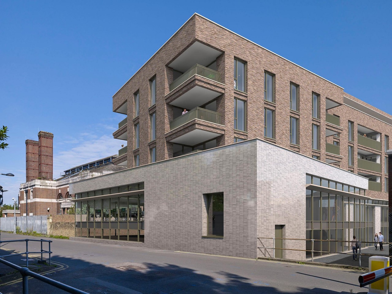 eye-kon visuals have the objective of emphasising a simple palette of brown bricks and glazed cream bricks with re-constituted stone. Great attention went into detailing references to local buildings, including the brick forms and stone banding of the adjacent Lambeth Waterworks pump house.